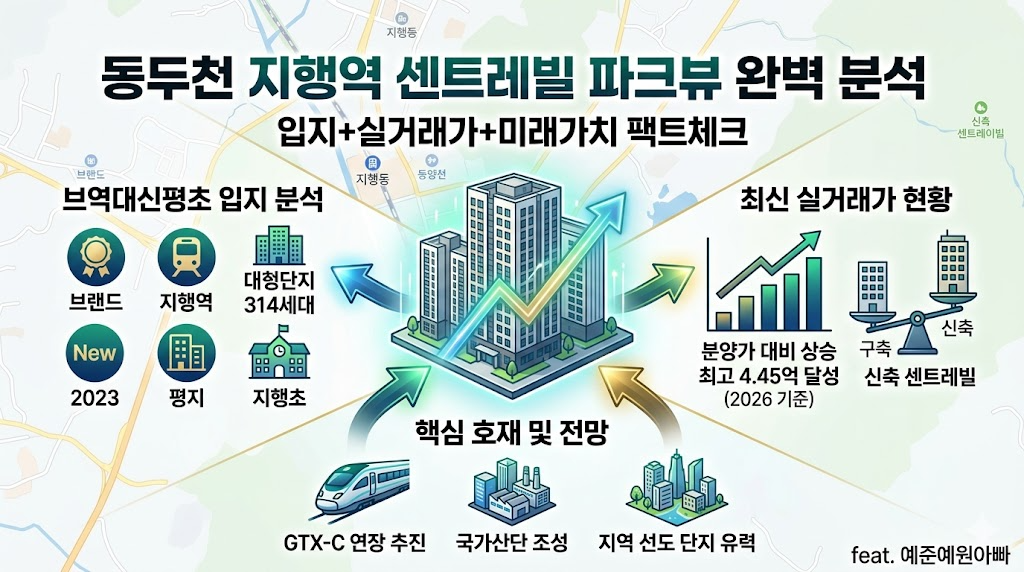 오늘은 경기도 북부권에서 지속적인 관심을 받고 있는 동두천시, 그중에서도 지행동의 핵심 주거지로 떠오른 '지행역 센트레빌 파크뷰'에 대해 심도 있게 분석해 보겠습니다. 과연 이 단지가 동두천의 진정한 대장아파트 후보가 될 수 있을지, 최신 실거래가와 입지, 미래 가치를 중심으로 냉정하게 검증해 보겠습니다.