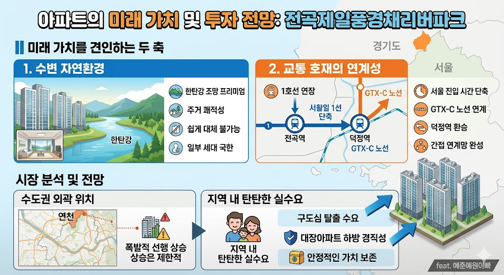 전곡제일풍경채리버파크의 미래 가치를 견인하는 두 축은 '수변 자연환경'과 '교통 호재의 연계성'입니다.