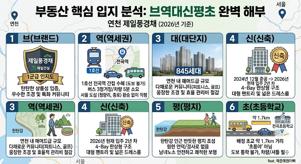 아파트의 미래 가치와 현재의 편리함을 결정짓는 가장 직관적인 6가지 기준인 브역대신평초(브랜드, 역세권, 대단지, 신축, 평지, 초등학교)를 통해 본 단지의 경쟁력을 냉정하게 점검해 보겠습니다.