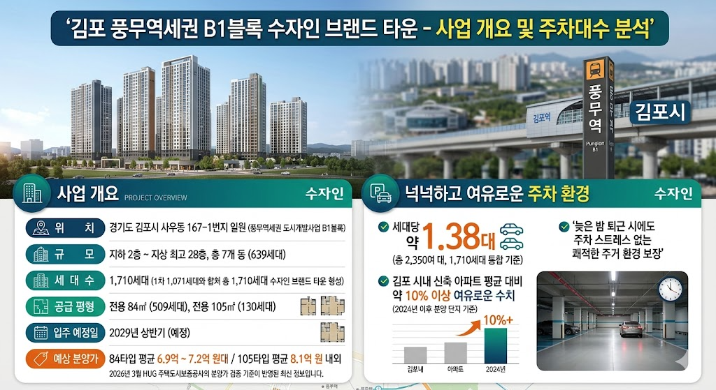 안녕하세요. 오늘 분석해 드릴 곳은 2026년 상반기 김포시 아파트 분양 시장의 최대 관심사로 떠오른 사우동 풍무역세권 수자인 그라센트 2차입니다. 1차 단지의 성공적인 흐름을 이어받아 중대형 평형 위주로 공급되는 이번 2차 단지는 실수요자와 투자자 모두에게 매력적인 선택지로 꼽히고 있습니다.