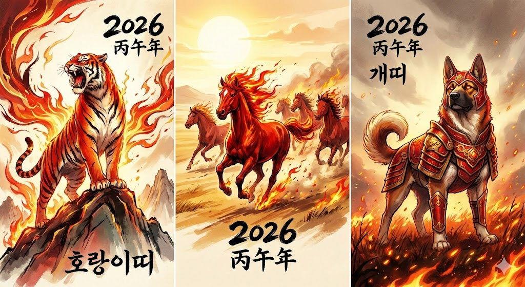 2026년은 육십갑자로 병오년(丙午年), 바로 "붉은말의 해"입니다. 말은 역동적이고 진취적인 동물인데, 여기에 뜨거운 불(Fire)의 기운인 '병(丙)'이 더해져 그 에너지가 매우 강력한 한 해가 될 것으로 보입니다.