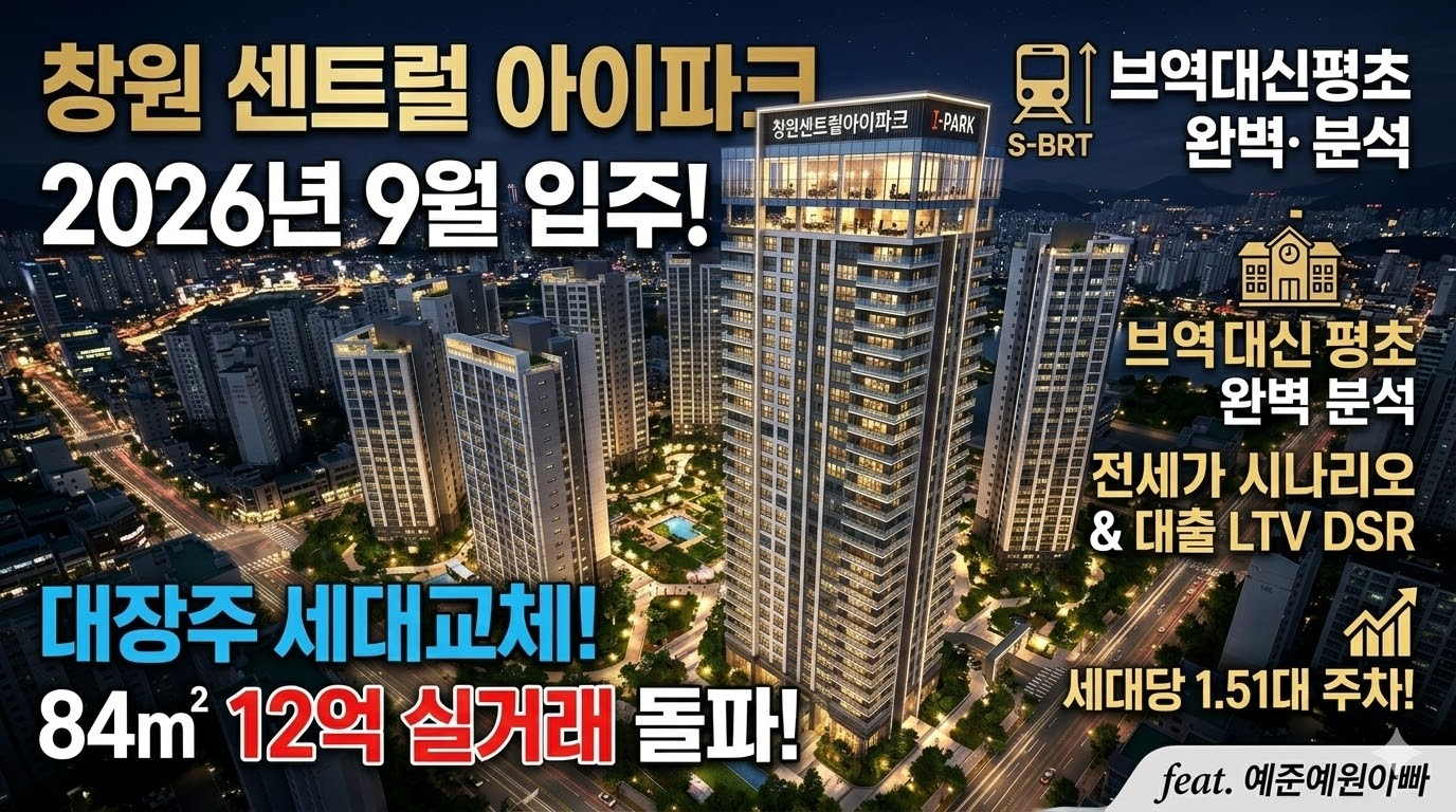 2026년 3월 8일 최신 부동산 시장 흐름을 반영하여, 경남 창원특례시 성산구의 부동산 지형을 새롭게 재편할 매머드급 신축 단지 창원센트럴아이파크에 대한 심층 분석을 진행합니다. 구 신월주공아파트 재건축을 통해 탄생하는 이 단지는 2026년 9월 입주를 앞두고 있으며, 최근 실거래가 흐름을 보면 기존의 대장 단지들을 위협할 만큼 뜨거운 시장의 평가를 받고 있습니다. 객관적인 입지 분석 프레임과 현실적인 자금 조달 계획을 통해 현시점의 정확한 가치를 짚어보겠습니다.