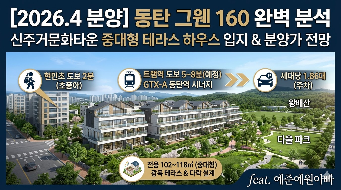 안녕하세요. 부동산 입지 분석 및 청약 전문가, 예준예원아빠입니다.2026년 2월 현재, 동탄2신도시는 GTX-A 개통 이후 또 한 번의 변곡점을 맞이하고 있습니다. 오늘은 많은 분들이 '마지막 기회'라